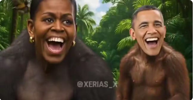 Na noite de quinta-feira (5), Trump compartilhou em sua conta na Truth Social um vídeo com cerca de um minuto de duração. A gravação abordava teorias conspiratórias sobre as eleições de 2020 e, nos segundos finais, exibia os rostos de Barack Obama e Michelle Obama sobrepostos a corpos de macacos, ao som de “The Lion Sleeps Tonight”.